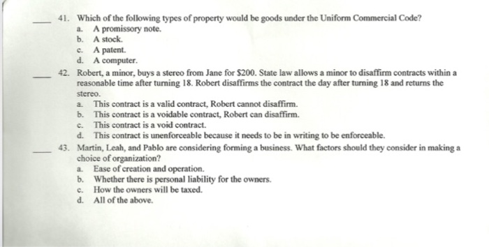 26 - Answer is D All of the Above, To enfore a contract, all contracts should be in writing