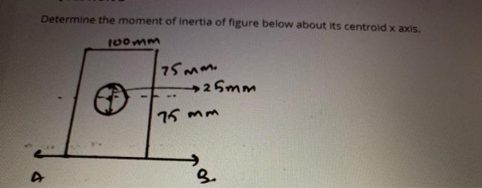 Determine the moment of inertia of figure below about its centroid x axis. 100mm 75 mm 25mm 75 mm S.