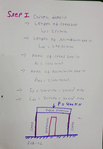 None 0.2: The rigid platform has negligible mass and rests on two steel bars, each 250.00 mmlong. The center bar is aluminum and 249.90 mm long. Compute the stress in the aluminumbar after the center load P 400 kN has been applied. For each steel bar, the area is 1200mm2 and E= 200 GPa. For the aluminum bar, the area is 2400 mm2 and E= 70 GPa.